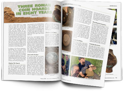 Three Roman Coin Hoards in Eight Years – David Moss thought he had hit the jackpot eight years ago when he found a hoard on his permission in North Wales, so he couldn’t believe his luck when it looked like it was happening again….and again!